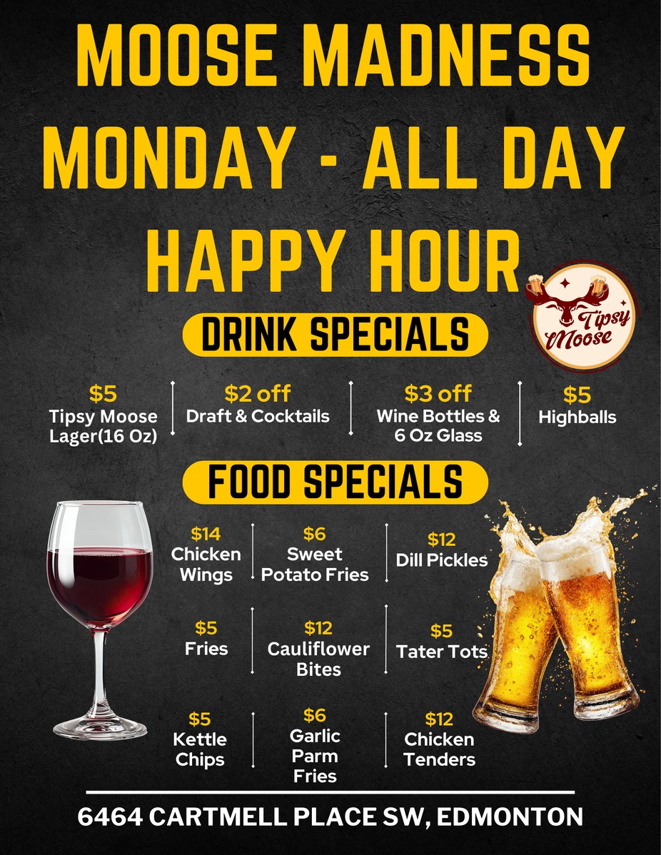 Monday - All Day Happy Hour at The Tipsy Moose